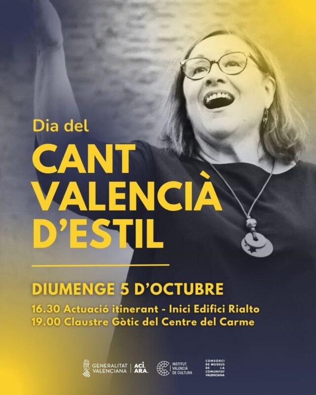 El Institut Valencià de Cultura llevará a cabo, el próximo domingo 5 de octubre, la festividad del Dia del Cant Valencià d’Estil en la ciudad de València. Este evento, que se ha celebrado desde 1998, reunirá a destacados artistas de este estilo musical popular.