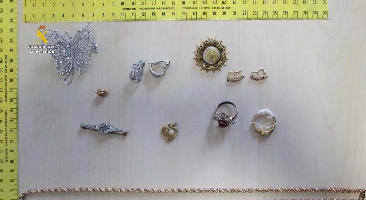 Los agentes interceptaron a los dos hombres en un coche, donde encontraron 266 euros en metálico, varias joyas, piezas de oro sin justificar y herramientas específicas para forzar cerraduras. La intervención permitió constatar que los objetos procedían de un robo reciente en una vivienda del municipio.