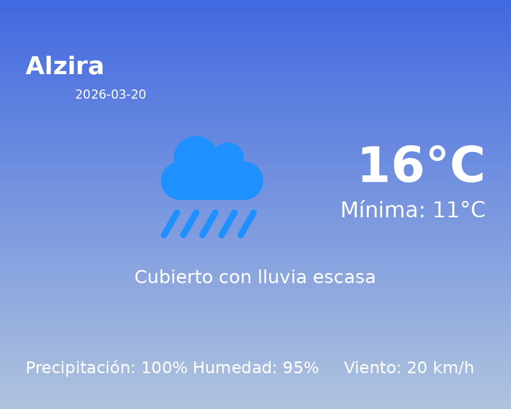 Pronóstico del Tiempo para Alzira – 20 de Marzo de 2026