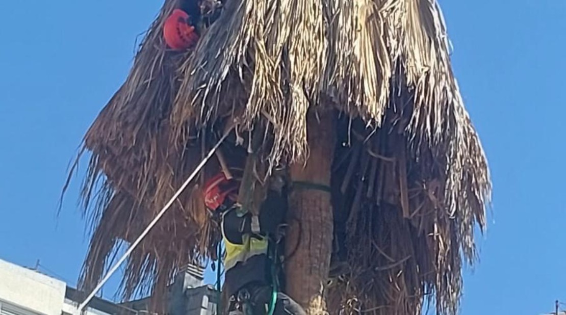 Aviso por varón atrapado en la copa de una palmera con dificultades respiratorias.