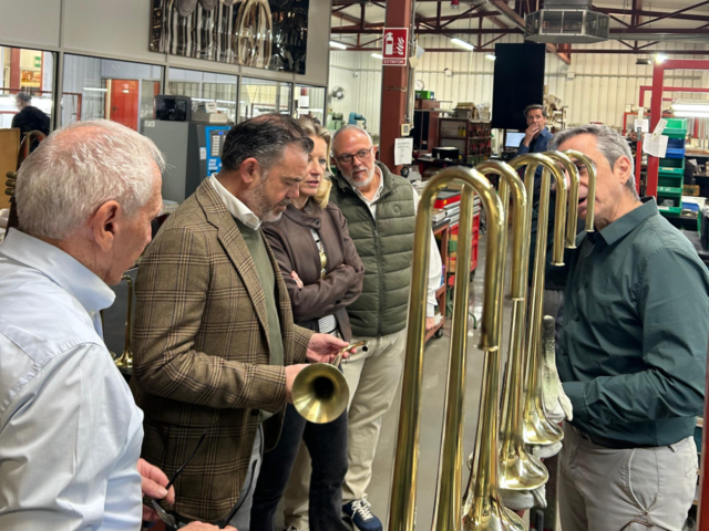 Durante su visita a la empresa Stomvi en Xirivella, el vicepresidente segundo y conseller de Presidencia, José Díez, subrayó que las empresas de la Comunidad Valenciana que sobresalen por su excelencia e innovación actúan como excelentes embajadoras de la región. Stomvi, especializada en la fabricación de instrumentos musicales de viento-metal, destina casi el 80% de su producción al mercado internacional, con presencia en más de 30 países, incluidos Japón, China, Australia y Estados Unidos.