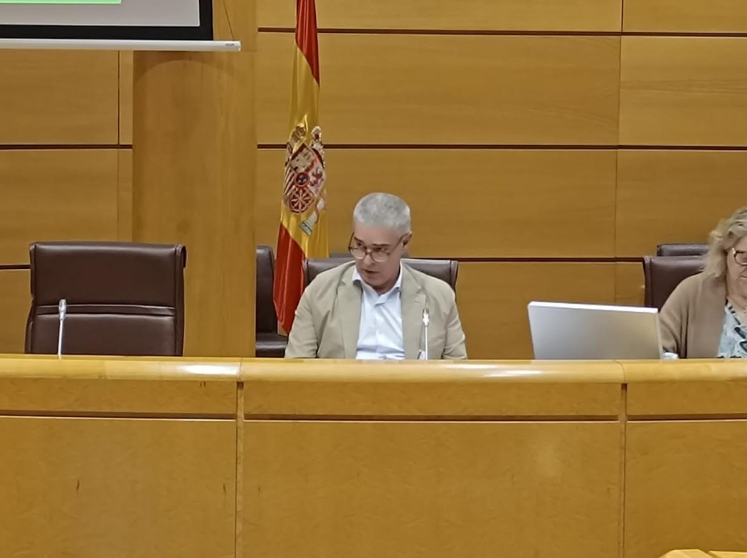 Jon Urkiola, presidente de DEDIT, durante la comparecencia en el Senado